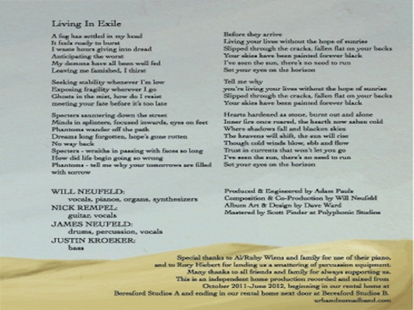This is an independent home production recorded and mixed from October 2011-June 2012, beginning in our rental home at Beresford Studios A and ending in our rental home next door at Beresford Studios B.